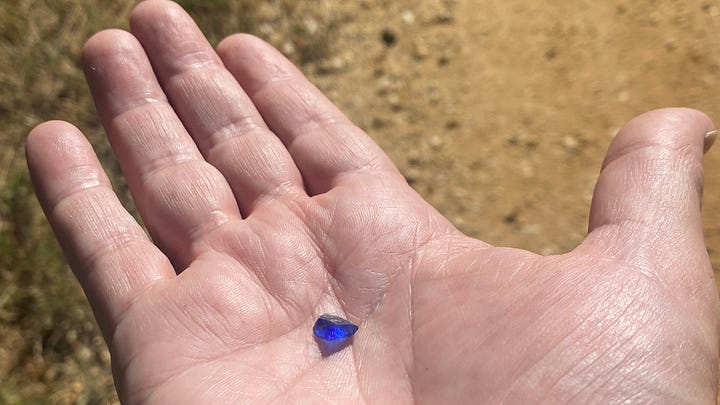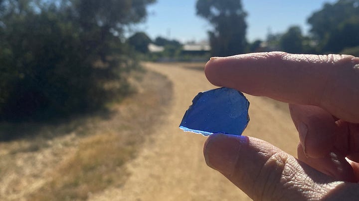 Sometimes, without looking for it, I find pieces of blue glass in the dirt.